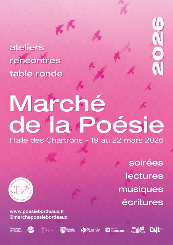 Rencontrez les auteurs de Nouvelles Traces au Marché de la poésie 2026 de Bordeaux, Halle des Chartrons, du 19 au 22 mars 2026.